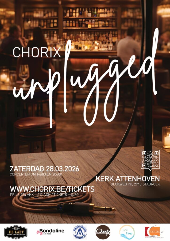 Op zaterdag 28 maart 2026 brengen we ‘ChoriX Unplugged’ in de kerk Attenhoven te Stabroek.